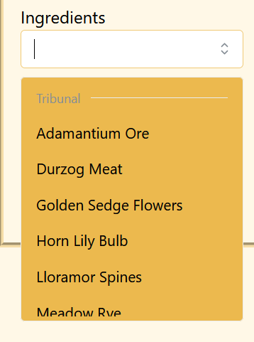 The app itself is designed to explore potions in the computer game Morrowind. The basic idea is that there are several hundred thousand combinations of ingredients to make potions and searching through all of them to find specific properties is unrealistic. Therefore, I implement some helpful features to reduce any manual work.
